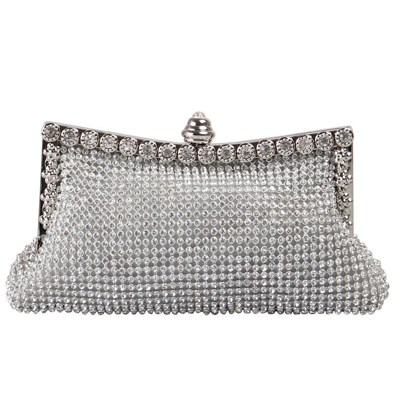Full crystal rhinestones covered soft evening clutch bag in gold.